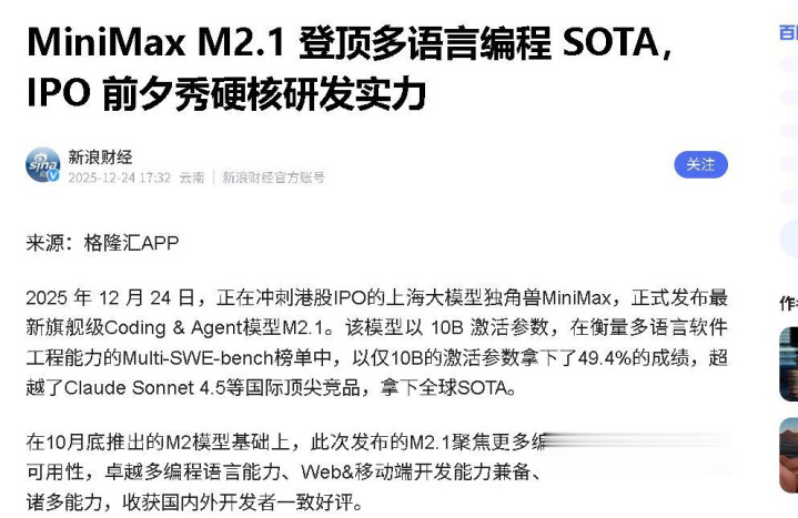 大家好,我是乔叔,今天咱们来聊聊MiniMax M2.1是怎么让AI编码回归踏实做事的正道。