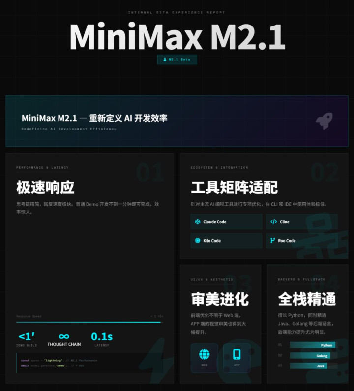 M2.1上线,就是要打破这种自嗨模式。它想的不是演示“短板”,而是注重每一步的稳妥和可维护。